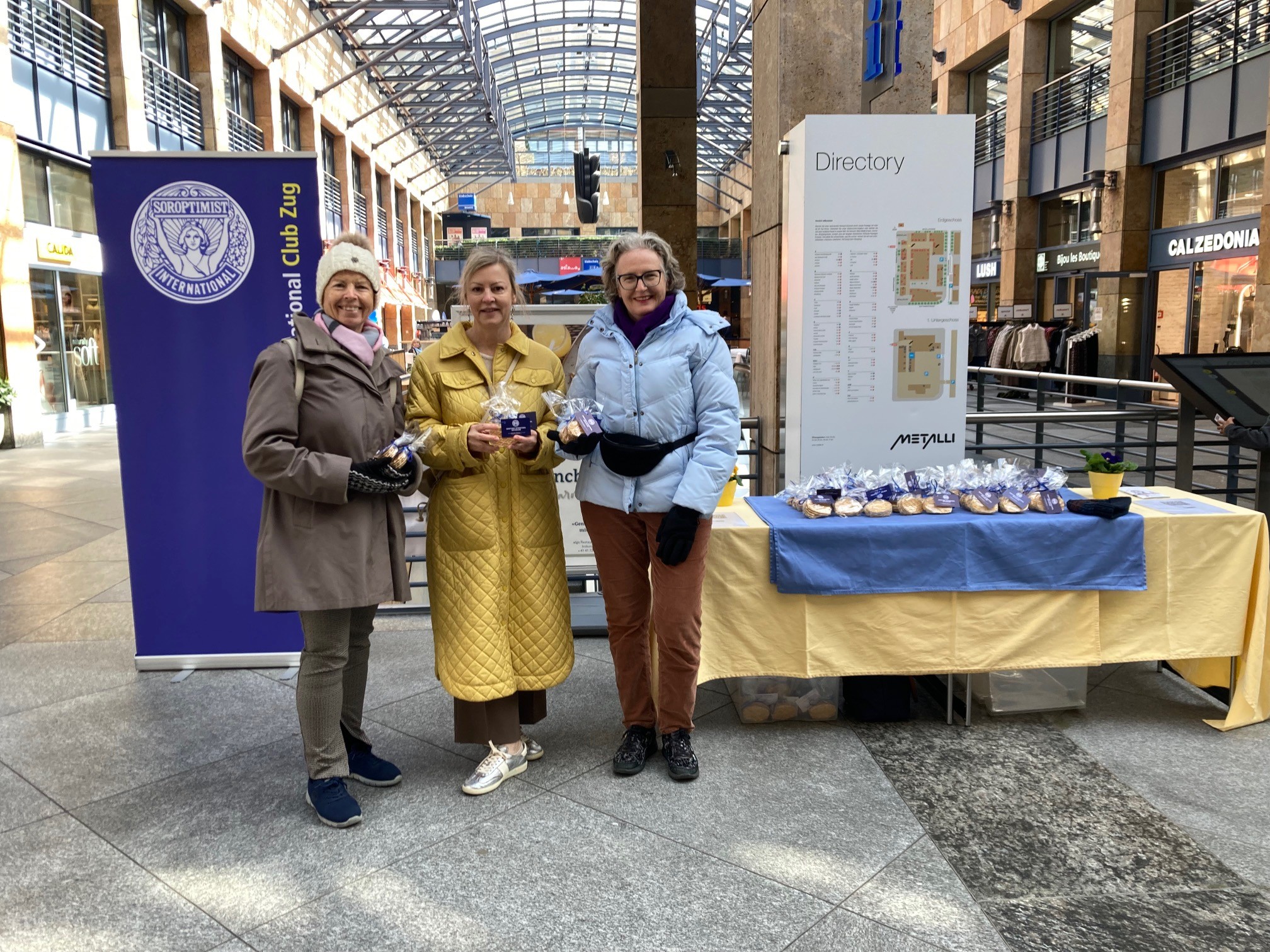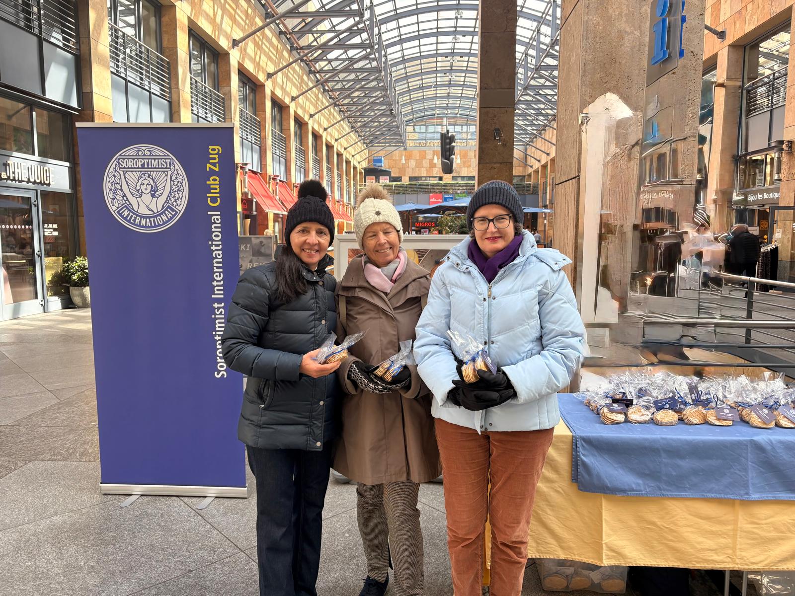 Am Samstag, 7. März, beteiligte sich der Soroptimist International Club Zug (SIC) mit einer Aktion im Einkaufszentrum Metalli am Swiss Soroptimist Day. Mitglieder des Clubs verkauften Guetzli und informierten interessierte Passantinnen und Passanten über ihr Engagement zugunsten des Unionsprojekts «Emotionen in Rosa».